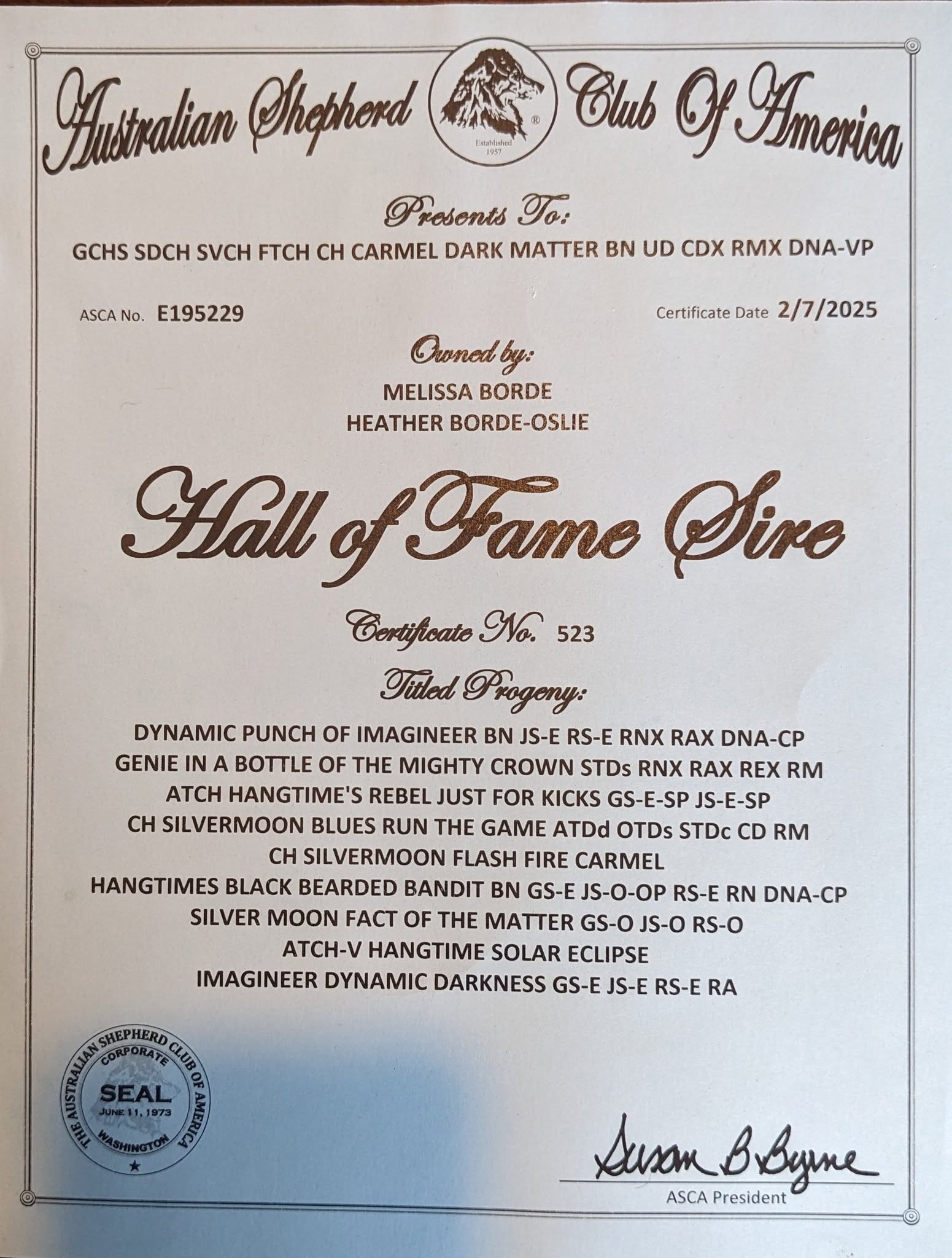 Congratulations CarMel Dark Matter on becoming a new HOF sire!